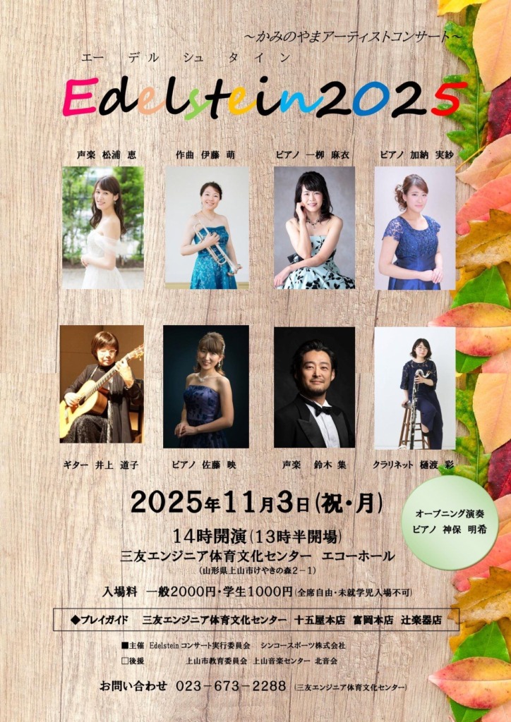 エーデルシュタイン2025 〜かみのやまアーティストコンサート〜 TOPconcert2025 2025-11-01 〜かみのやまアーティストコンサート〜 Edelstein 2025 [2025年11月3日(月曜)][三友エンジニア体育文化センター(山形県上山市)][出演:一柳麻衣] [ エーデルシュタイン2025 〜かみのやまアーティストコンサー... ]20252025/11/01 00:00
